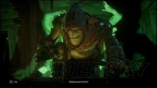 step14.从四方平台右侧的楼梯往下层走,此楼梯围绕着一个牢房而建,里面囚禁着一只哥布林,不建议将它放出来,因为它会造成不少的骚动,而打开牢笼的钥匙就在牢房的门前。