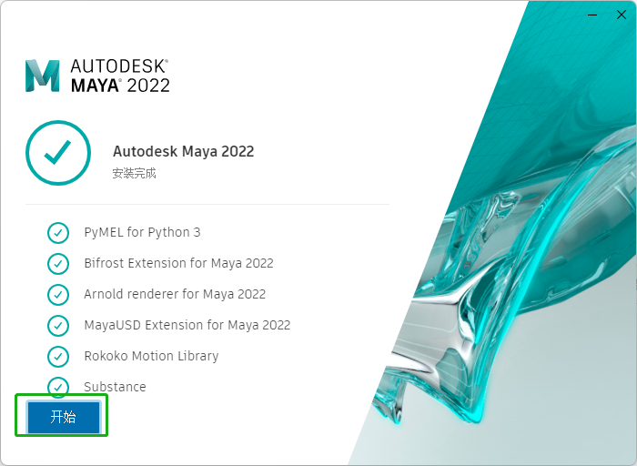 6、Maya2022直装版安装完成,点击【开始】启动软件;