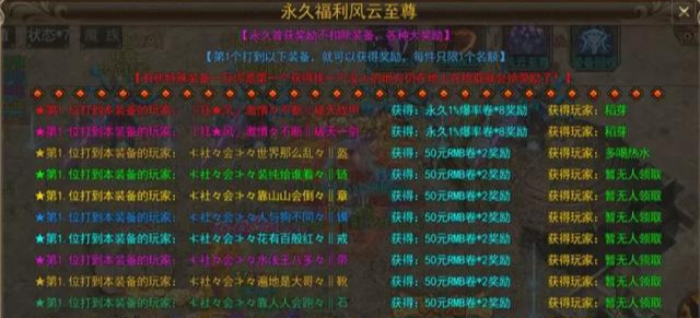 多种首杀、首爆奖励