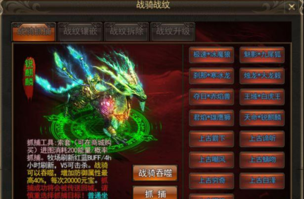 全新坐骑系统,该版本坐骑提供大量的移动速度加成。坐骑可以镶嵌战纹,战纹可以增加大量附加属性,战纹来源是九神魔塔,或者打boss掉落。战纹可以合成,最高15级,可以拆除,前期可以镶嵌低级过渡,后期再拆除更换。。