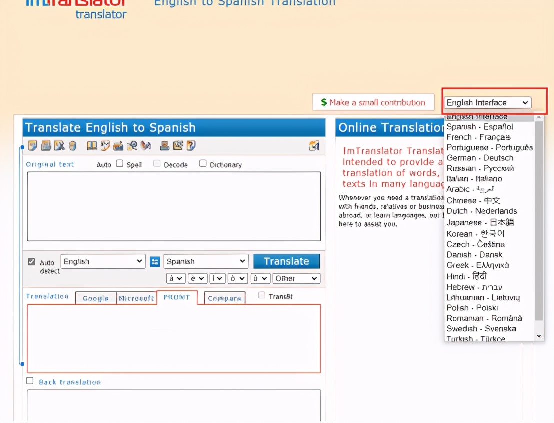 尽管是全英文网页,但是可以在右上角的语言选项中修改为中文,这样就可以愉快地使用了。除了直接翻译外 ImTranslator 还支持在线阅读等功能,喜欢的读者可以自行探索一下。
