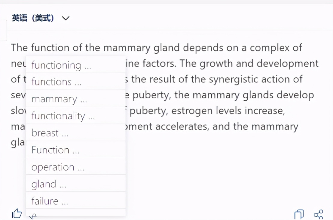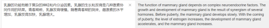 翻译效果上,专业词汇翻译比谷歌强很多,比如所有的「乳腺」都会被翻译成了「Mammary gland」,英译汉部分和 edge 浏览器相似,同样对从句的翻译能力较差,部分语句读起来不太通顺。