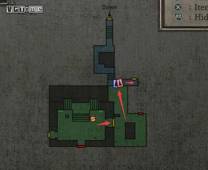 在地图画面中,选择“item list”(道具列表)页面(按×),既可以看到丢在地上或者检查过但没有捡的道具。地图方向为上北下南左西右东。