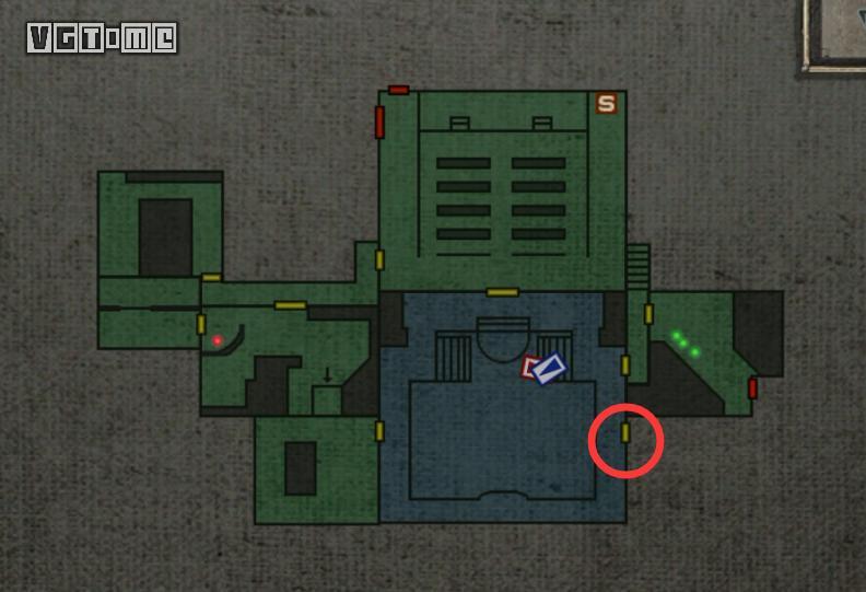 接下来要去二楼正中(正北)的房间:教室。在这里可以捡到霰弹枪子弹和墨带,还有存档点。桌子上有一些文档可以观看。之后从教室唯一没锁的门出去,狭窄的走廊有两只丧尸。干掉后从下图这扇门进入。