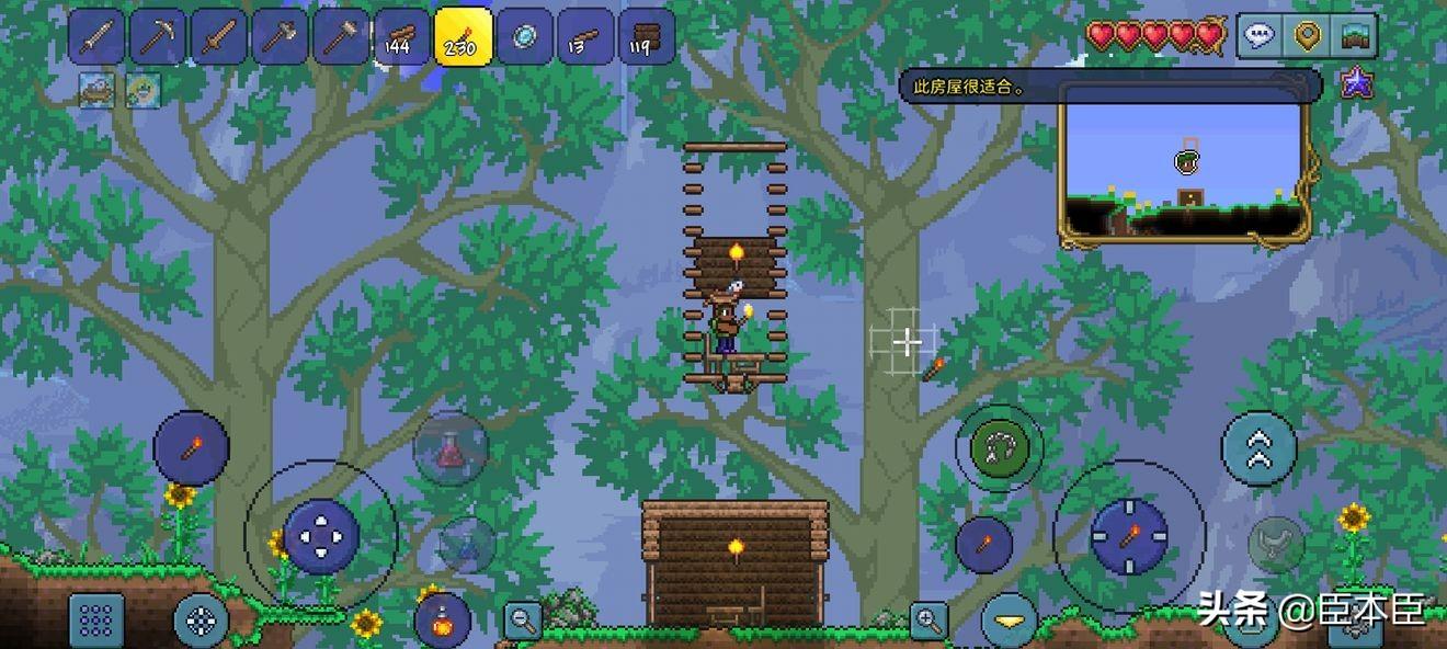 第一章:标准房屋一个能让NPC居住的屋子,称有效房屋。房屋的大小最小为60个图格(包括边框,不包括边框时内部最小30格),最大不能超过750个图格;此外需要至少一处光源和一处入口,并且房间内必须有桌子和椅子(桌子可替换为工作台)或者是一张床,并且保证房屋外框封闭,地板至少有一格实心块(任何平台都不是实心块!),背景墙壁的空洞不能过大。达成条件后该房屋生效。接下来按步骤教大家造一个火柴盒:1.用木头搭一个6x9的框架
