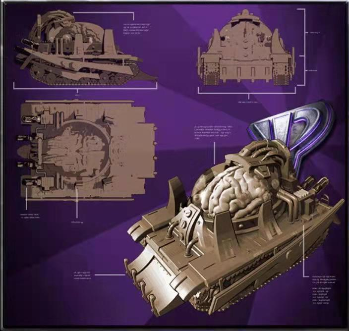 脑车,原名好像是心灵控制车,我一般都叫心灵之主,所以都忘了它在尤复的原名了。它由尤里的重工和潘多拉枢纽,呸,是尤里的高科解锁。武器是心灵控制波,一个安全范围内最多可以控制三个敌人,一定时间内可以无限控制,但超过三个就会开始脑溢血,逐渐降低耐久。如果超出得越多,降低的也就越快,最后自己受不了,直接自爆。