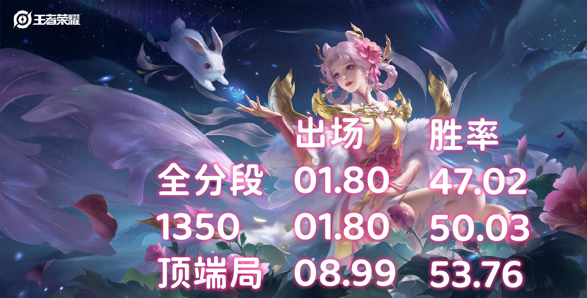 中低分段的出场率极低,胜率也非常平庸,但是到了高手的手里,胜率立马飙升,嫦娥的胜率在顶端局中能常年维持在前十,说明了这个英雄的上限还是很高的。