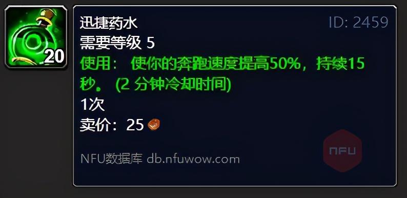 虽然在正式服已经被砍成“最大使用等级50级”,但在的TBC里尚且没有使用限制,而且是唯一增加奔跑速度的药水。需求量不大,但这个特殊属性在野外或战场等场景下可能有奇效。制作材料为1个石南草以1个雨燕草。
