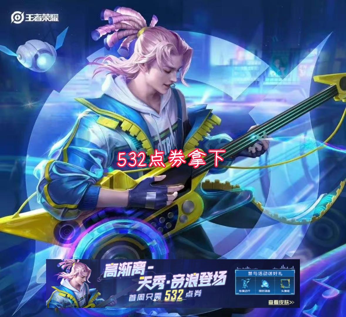 下一款全民电竞大赛皮肤已经曝光,也就是高渐离的天秀音浪,首周只需要532点券。