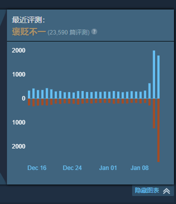 《绝地求生》已于昨日转为永久免费游戏,在游戏免费后,大量新玩家涌入游戏,Steam页面出现了大量的新评论,目前该游戏Steam用户评价已从59%好评跌至56%。
