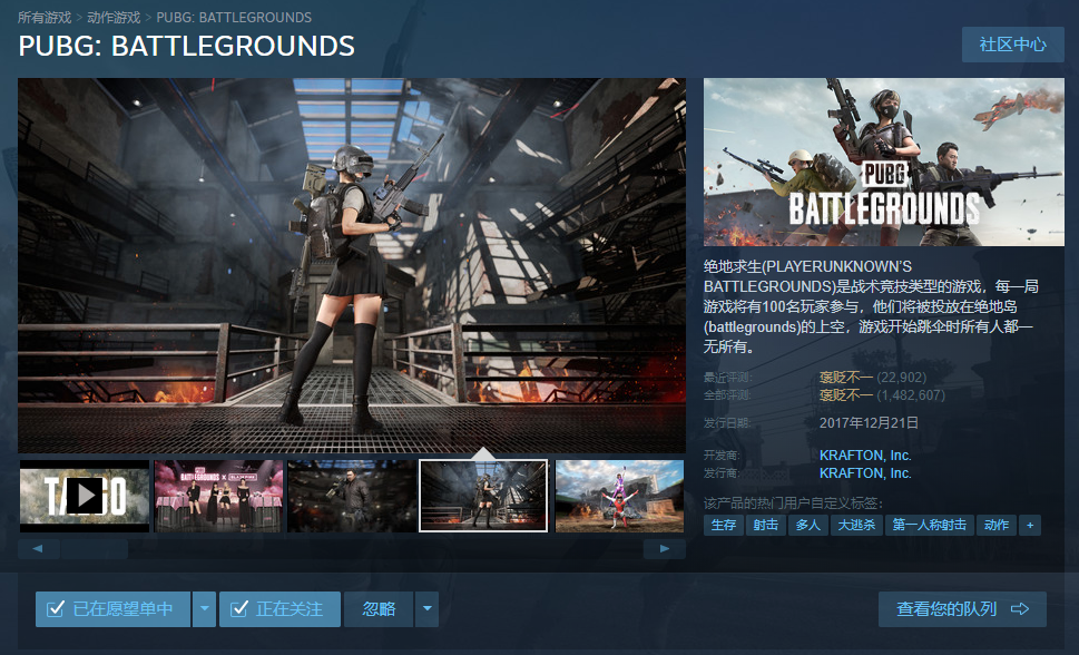 IT之家 8 月 7 日消息“吃鸡”游戏绝地求生,近日正式将英文名更改为《PUBG:Battlegrounds》,此前为“PlayerUnkown's Battlegrounds”。目前,Steam 商店页面的名称已经变更。这款游戏于 2017 年发布,是全球最热门的在线竞技游戏之一,目前售价 98 元人民币。