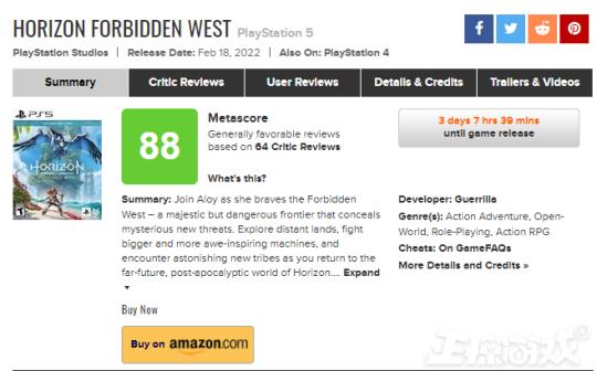游戏在2月18日正式上线,目前评分网站中各大媒体评分也已经曝光。根据M站的数据来看,国外媒体平均分都给出了88分的高分,看来这次游戏中的大世界还是征服了绝大多数玩家。根据相关资料,游戏有两个版本的售价,PS4 版售价 59.99 美元(约人民币380元),PS5 版售价 69.99 美元(约人民币443元)。