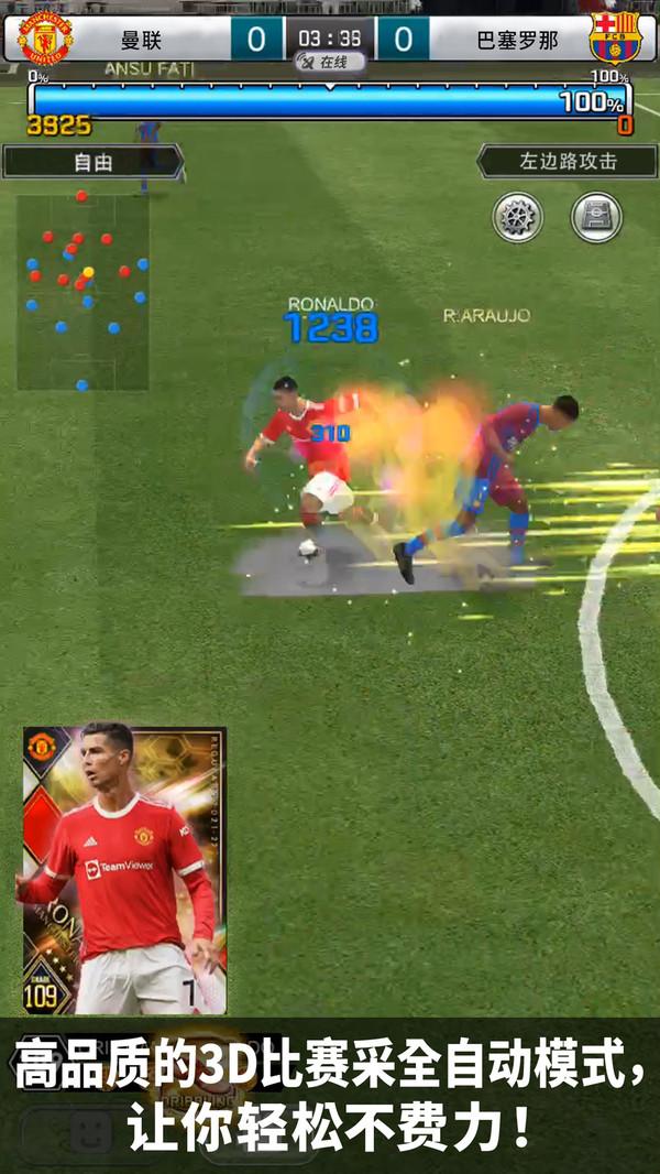 可以随时随地与对手实时对战,你不仅可以通过排名赛挑战未知强敌,还可以和好友进行友谊赛。此外,它还有“11人对战”的模式,11名玩家各自选择最强的选手组成梦幻阵容实时共同战斗。