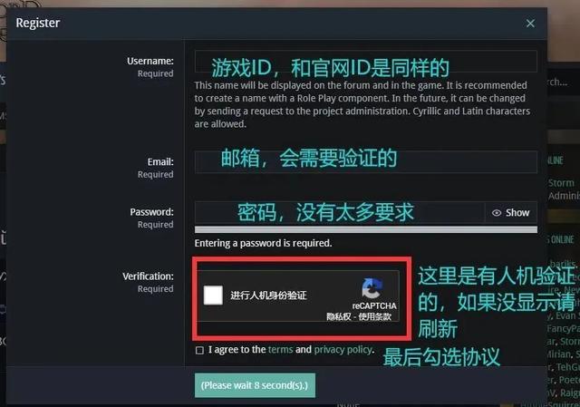 游戏的注册流程虽然简单,但由于“霸主Online”的官方网站地址架设在国外(据说是在俄罗斯),网页里“人机验证”的模块是死活都刷新不出来(开了加速器也刷不出来)。