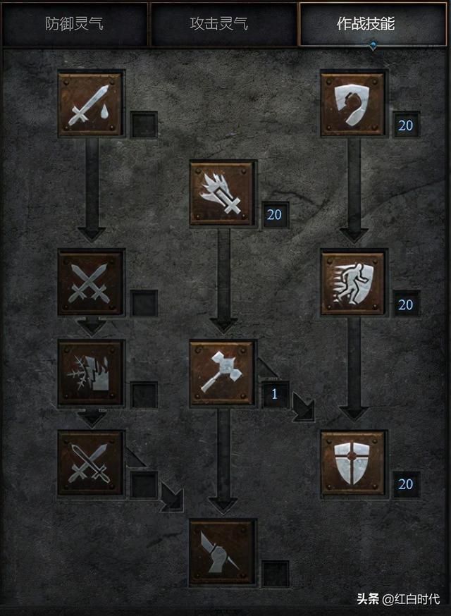 首先是锤骑,只有4个技能需要加满,防御灵气里的活力、攻击灵气里的祝福瞄准和专注、作战技能里的祝福之锤。过路点是祈祷、净化、反抗、力量、圣光弹、盾击、冲锋(突击)、圣盾。其中圣盾是4个技能满之后尽量加高的技能。因为可以提高格挡和防御。