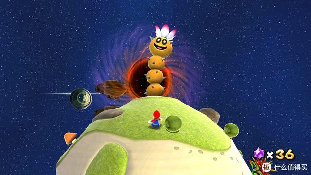单论游戏乐趣,《超级马里奥银河》我认为跟《超级马里奥 奥德赛》不分伯仲。游戏关卡是银河中的一个个迷你小星,这些星球体量大小不一,场景丰富。像什么空间站、糕点世界、海滩、熔岩世界等等,每一关都很独特,不会让玩家觉得重复。各类天马行空的关卡设计也让玩家大呼过瘾,总是期待下一关的惊喜。玩家需要完成挑战找到星星,解锁更多新关卡。而游戏新引入的“地心引力”概念, 让角色无论上下左右往哪走都会被引力牵引,整体操作起来的感觉妙不可言。