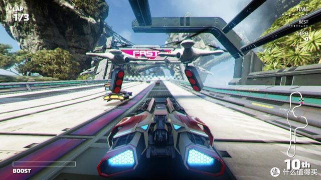 这款游戏只有下载版,它可以看成是 Switch 上画面最好的赛车游戏,全程稳定 60 帖运行。游戏架空未来世界的设定让我觉得挺新鲜,所以这里的车都是磁悬浮的。跑起来速度感比传统赛车游戏要加很多,配合上各类光影特效及 HD 震动,游戏的时候让人心跳加速,可以作为消遣小游戏偶尔让刺激一下精神不好的自己。另外游戏小归小,但各大场景做得一点不含糊,从空间站到未来都市,从大沙漠到恒附近,这些场景在强烈的图形技术表现下让人沉浸其中。边比赛边听着音乐享受科幻美景,不失为一种乐趣。