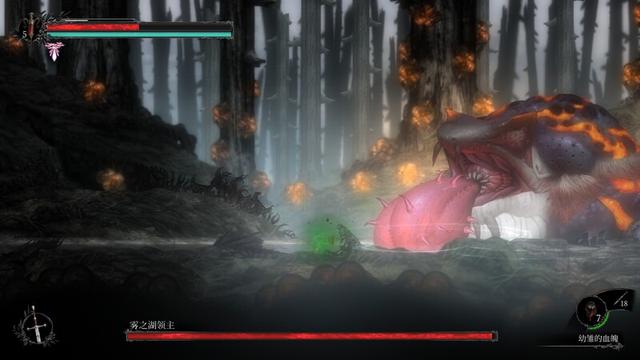 《守夜人:长夜》的篝火数量也不多,这意味着你要花费许多学习成本才能到达下一个篝火,最离谱的就是很多boss战前面还没有篝火可坐,制作组给了玩家幼雏的血傀这个能随时存档的道具作为替代品,如果你不小心在boss战前面没用血傀及时存档那你将苦不堪言,还好几个boss战的地图都和普通场景有极高的区分度,流程中给的血傀也基本够用(前提是你不乱用),后期玩家熟练后有了自保能力这款游戏开始变得恶魔城起来了,最后 boss战的那一轮黑日,有种血污黑魂的最终战既视感。