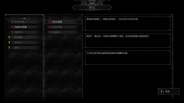 关于任务需要注意的是玩家在同一周目中会经历一次轮回,在你击退远古守卫后会直接从林地开始自己的第二轮试炼,第二轮试炼的场景和第一次会有细微的变化,第一次试炼没能完成的任务进入第二轮后会自动失败,所以要在第一次试炼中尽量把任务都给完成,第二轮试炼中很多任务也有时间限制。这种随着流程变化的任务倒是挺有意思,《黑暗之魂》中许多任务也会根据玩家的流程发生变化,只是《守夜人:长夜》的任务会完全失败,那个鲜红的叉号看的我十分难受,而魂系列你大部分情况下都有办法获得完整收益。