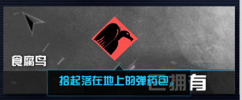 三、食腐鸟,如果你觉得子弹不够可以装,爆破不建议用,团队你是大神的话可以用,食腐鸟最大的作用就是绝境求生可以捡弹药,不用去补子弹,省牌子