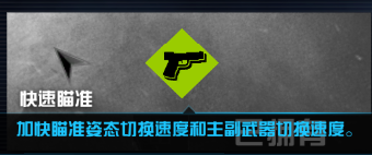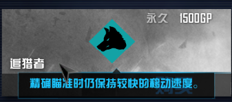 二、追猎者,这个也没多大作用,我也没买,用长枪的时候可以装个战术枪托,然后加这个技能,那瞄着走跟站着走一样快
