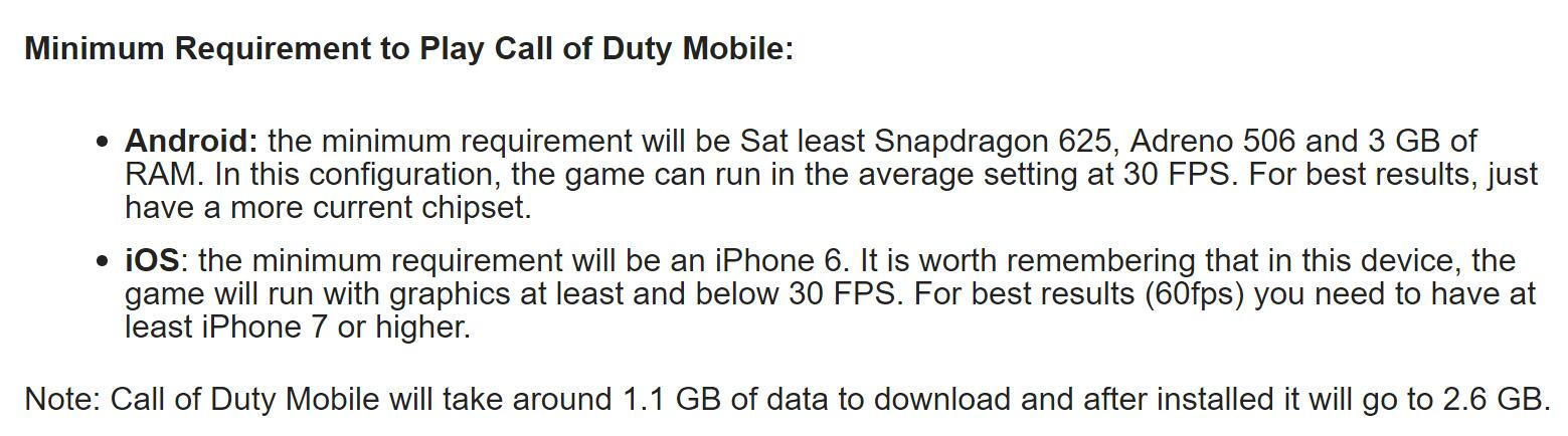Emmm,这么含糊其辞的说法显然不是我想要的,某个媒体曾公布了使命召唤手游的配置细节要求: