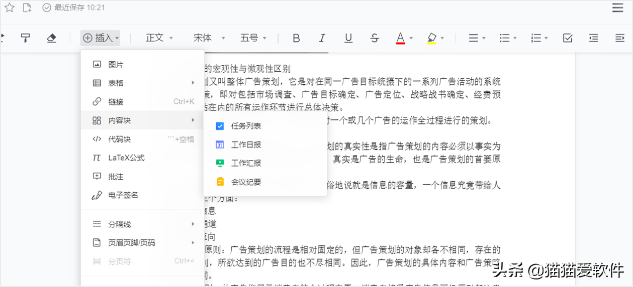 可以通过文档内的【内容块】编辑任务、工作日报、工作汇报等等。通过一个文档即可协作编辑交流,上手简单,不用过多的复杂操作。