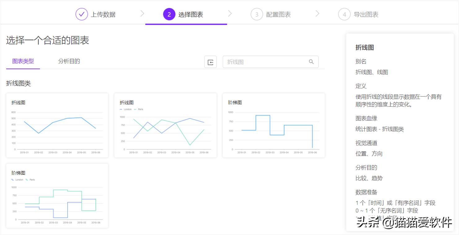他们家的图表类型非常多,颜色也很清爽,做出来很好看,可以直接上官网制作~