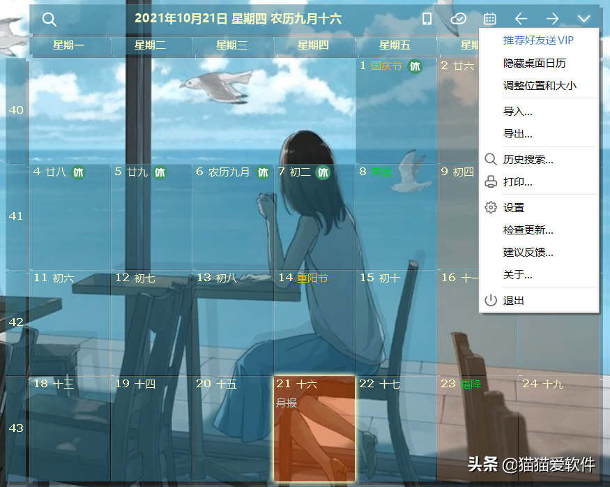 如果你不想天天需要打开日历才能看到日程的话,我强烈推荐你这个软件。