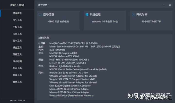 主界面简洁明了,硬件信息一览无余,各类工具涵盖了几乎所有硬件,比X大师不知高明了多少。