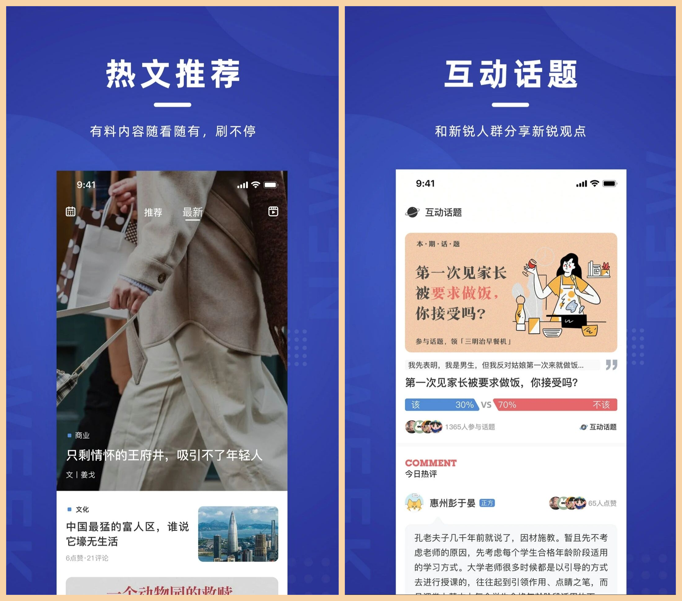 新周刊是一款手机客户端杂志,里面收录了历年的电子杂志,并与纸刊同步更新,随时随地都能畅读好文。每天热文推送,并有相关互动话题,让你发现更多新观点。