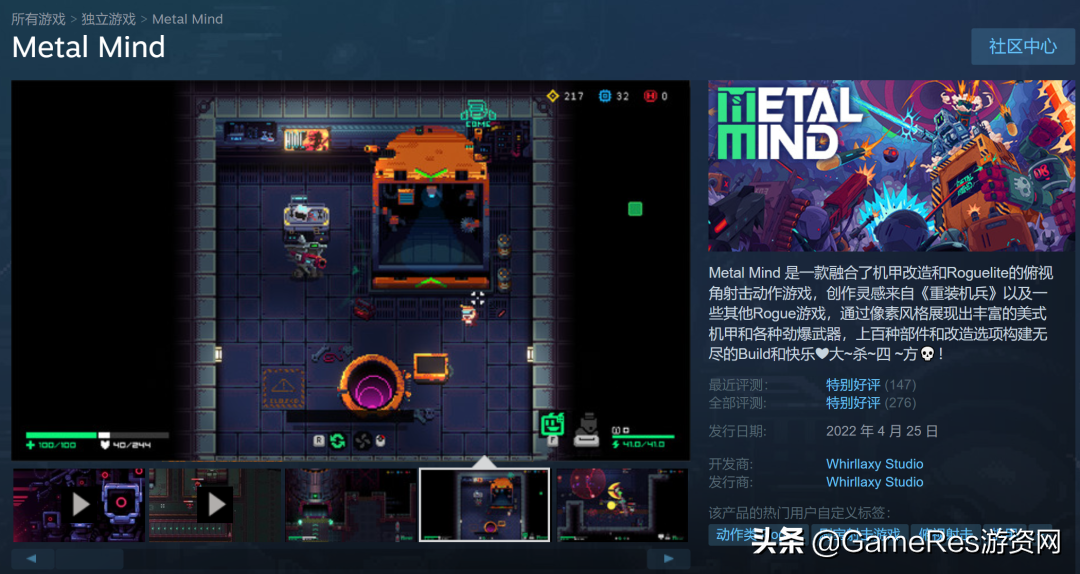 一个多月前,一款融合了机甲改造和Roguelite的俯视角射击动作游戏《Metal Mind》开启抢先体验模式,游戏上线后获得了“特别好评”。《Metal Mind》的制作人Joash从大学“影视动画专业”毕业后就开始从事主机&PC游戏美术设计的工作,参与过很多3A游戏的开发。他在高中毕业时曾许下两个愿望:参与制作Final Fantasy系列;成为游戏制作人。如今这两个愿望都已实现。