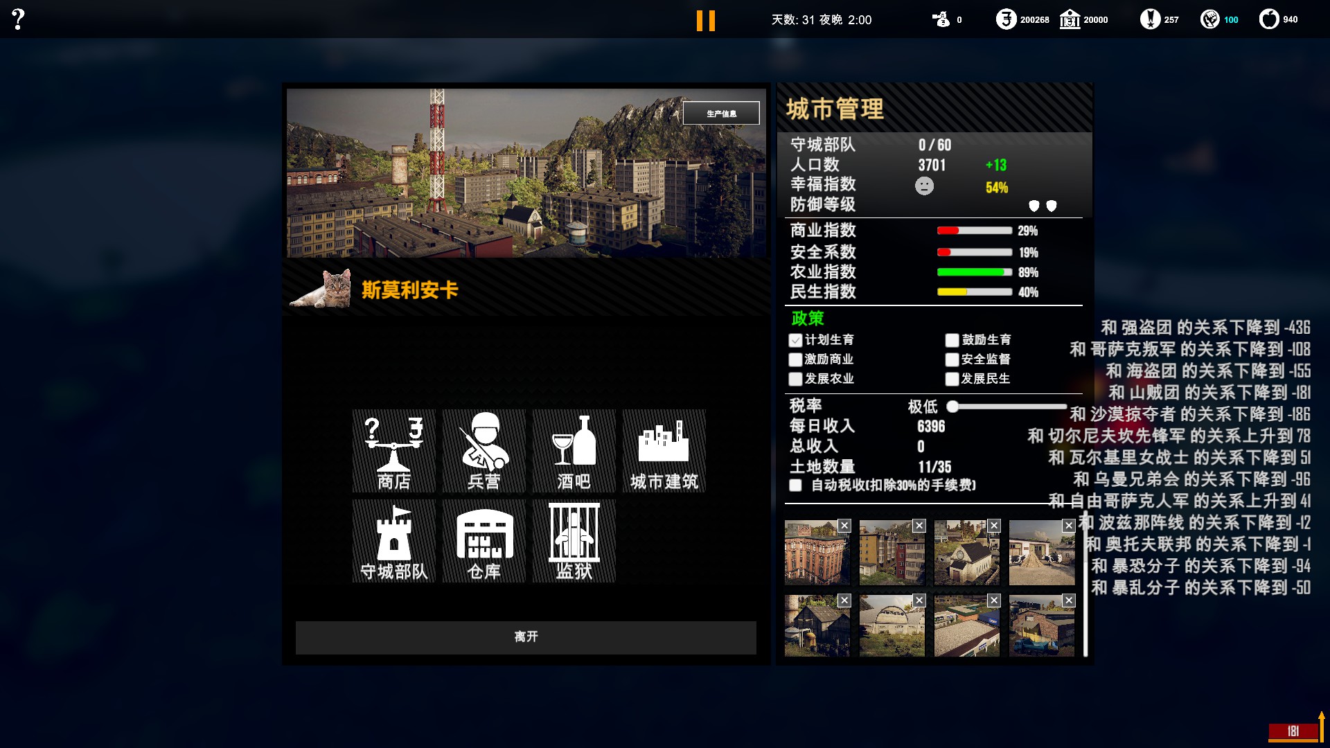 除了上述提到的加工环节单一外,城市里除经济建筑会产生实际经济效益外其他民生和军事建筑的数值有点像假的,根本没有相应的属性体系。比如说军事建筑里提高城市防御等级,但即使是4等级也无法降低敌人攻击频率也无法降低防御部队阵亡概率。