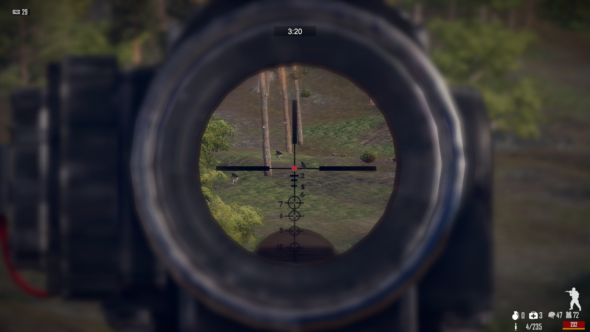 游戏的AI在早期EA阶段就饱受诟病,远视距加上自动锁定,玩家的埋伏在第一枪命中敌人时便会得到快速响应和准确回击,虽然现在的版本通过服装伪装加成降低被远距离AI还击的精准度,但超视距问题依旧存在,导致游戏里只有远程步枪佩戴高倍率瞄准镜拥有极大的优势,其他武器距离一远则弹道分散命中率低,射击体验大打折扣。在贴吧和相应的论坛里的攻略和讨论也都推荐狙击枪而不是其他武器。这导致游戏的体验严重同质化,此外游戏不同武器射击体验虽有不同但也大同小异。以目前游戏的核心战斗设计远达不到骑砍那样不同武器拥有不同使用技巧且富有深度。