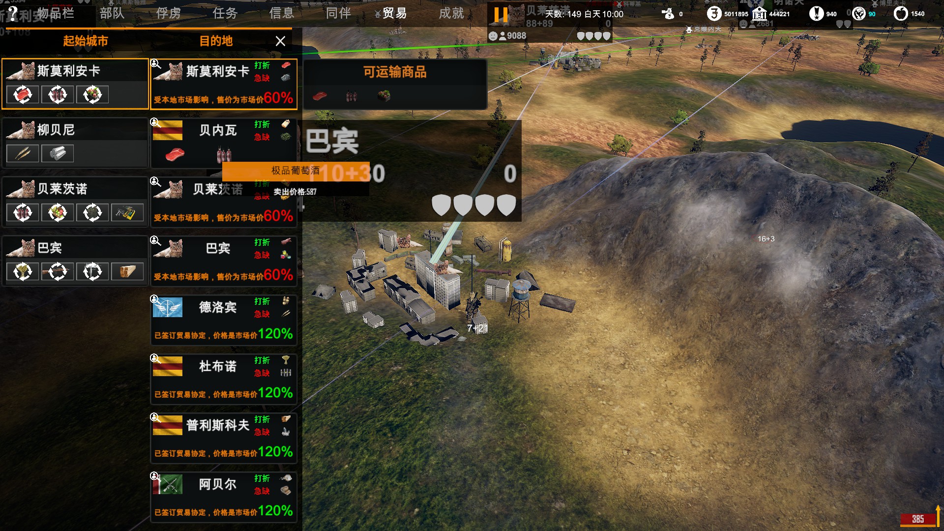 在与其他阵营关系较为友好时,玩家便可以派遣商队将自己城市内生产的物资运往友好阵营的城市,带来可持续的资金。玩家也可以根据进口方城市短缺的物资进行针对性出口,获得更多资金。不仅如此,游戏中的贸易会以单位形式出现在地图里,玩家可以看到贸易车队不断的在两座城市之间往返。