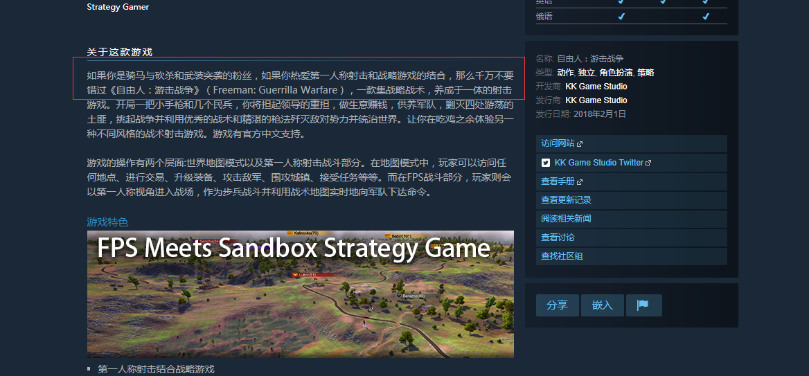 自由人:游击战争是一款仿照骑马与砍杀的开放世界游戏。游戏时代背景设定在近现代,冲突的舞台则发生在一座虚构的岛屿国家,由于内战导致原有国家四分五裂,各派系武装部队频繁交战。游戏于2018年年初以EA模式上线,直到今年10月5日脱离EA模式发布正式版。由于正式版距离早期测试版经历了多个版本的调整和内容追加,于是我花了些时间重新体验了一遍正式版,体验完之后发现游戏和当初开发者的许诺仍然有些距离,但我还是完整体验了整个游戏,做个总结吧。
