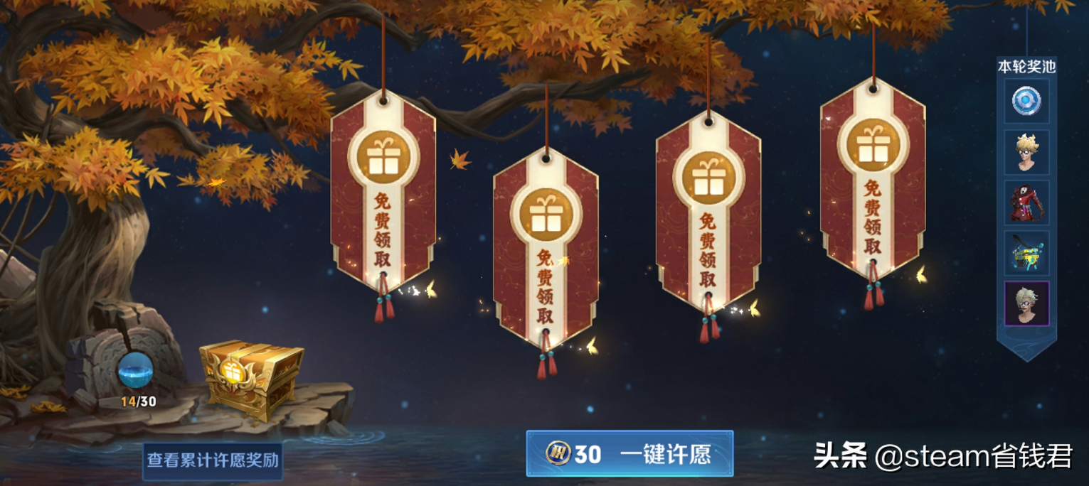 许愿屋每日0时和12时都会刷新,刷新后可以免费领取一个宝箱,宝箱中一般是蓝星币,免费领取30次可以兑换2个紫星币。如果玩家通过许愿屋连续不断地开宝箱,一个月可以获得4个紫星币。