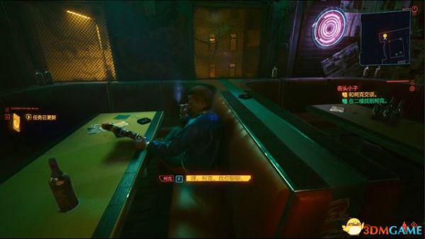控制V走到酒吧二楼,到里面的沙发桌找到柯克,上前与之对话。