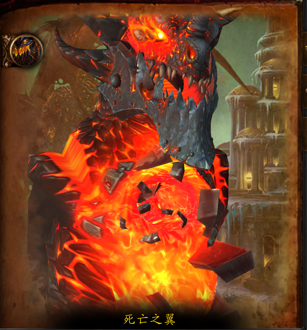 死亡之翼是版本4.3.0开放的巨龙之魂副本最终首领。与死亡之战的最终决战实际上在同一副本中分成了两个部分,首先是在他飞往大漩涡中途在他背上的战斗,然后则是与死亡之翼在大漩涡中的决战。