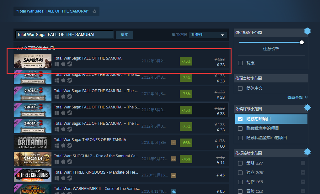 Total War Saga: FALL OF THE SAMURAI – 武士之殇 原价133元现价33元