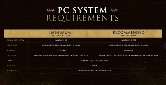万代发布的《艾尔登法环》PC端配置需求显示: