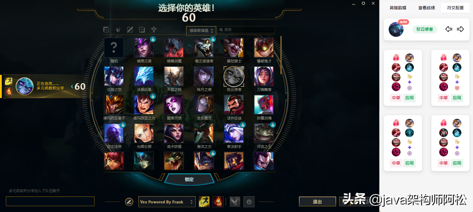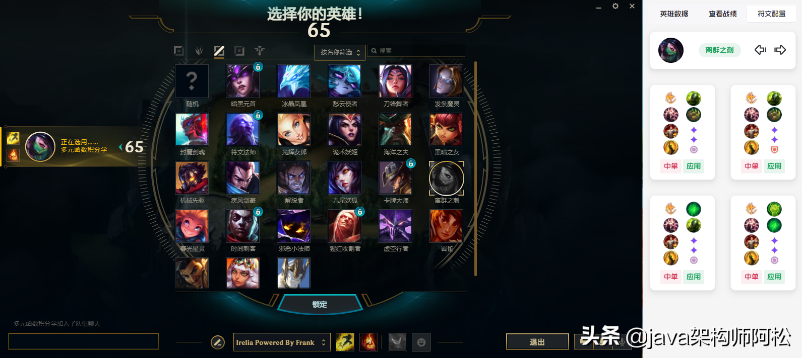 当你选择英雄时, 会自动弹出符文配置界面, 如下