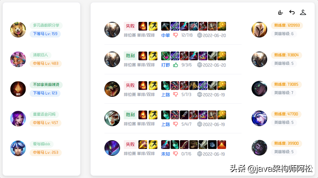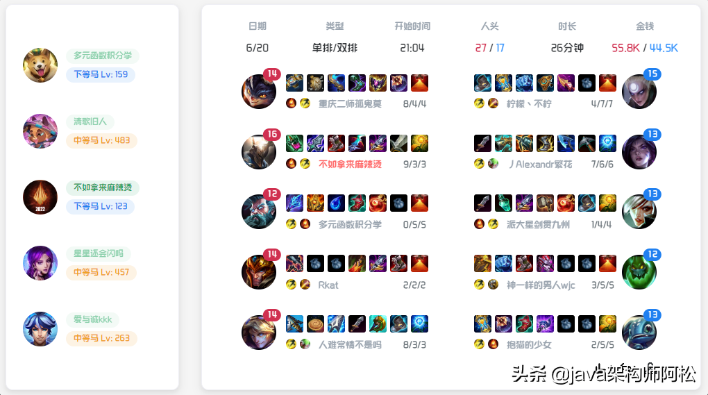 查看召唤师战绩详情