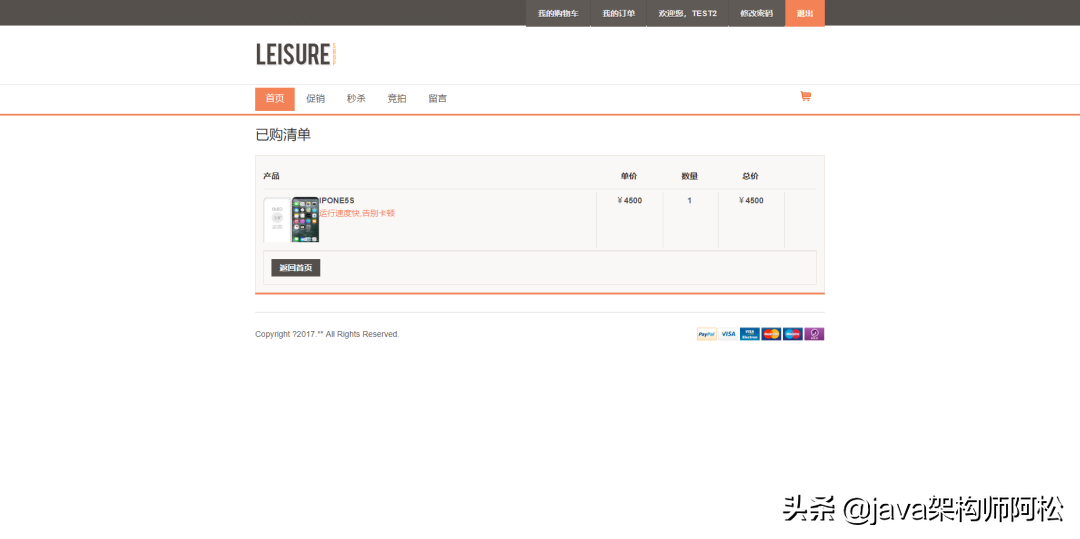 后台管理员发布商品,前端用户登录即可预览商品,进行下单。