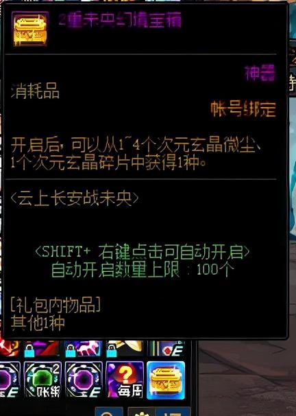 除上述途径之外,通关任意阶未央幻境地下城都有机会获得未央幻境宝箱,开启后可获得次元玄晶微尘或次元玄晶碎片(100个次元玄晶微尘可兑换一个次元玄晶碎片)。