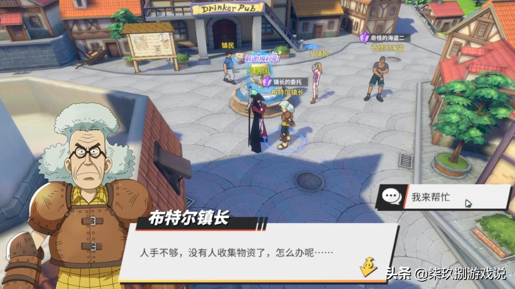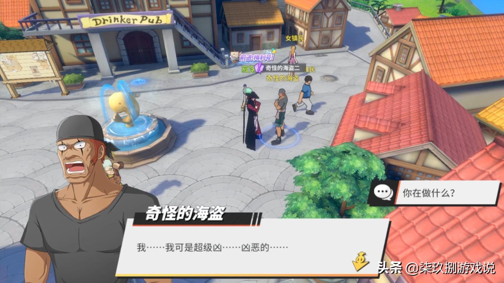 第一道题“一开始占据这个镇子的海盗团,他们的首领叫什么?”——此时答案选择“巴奇”