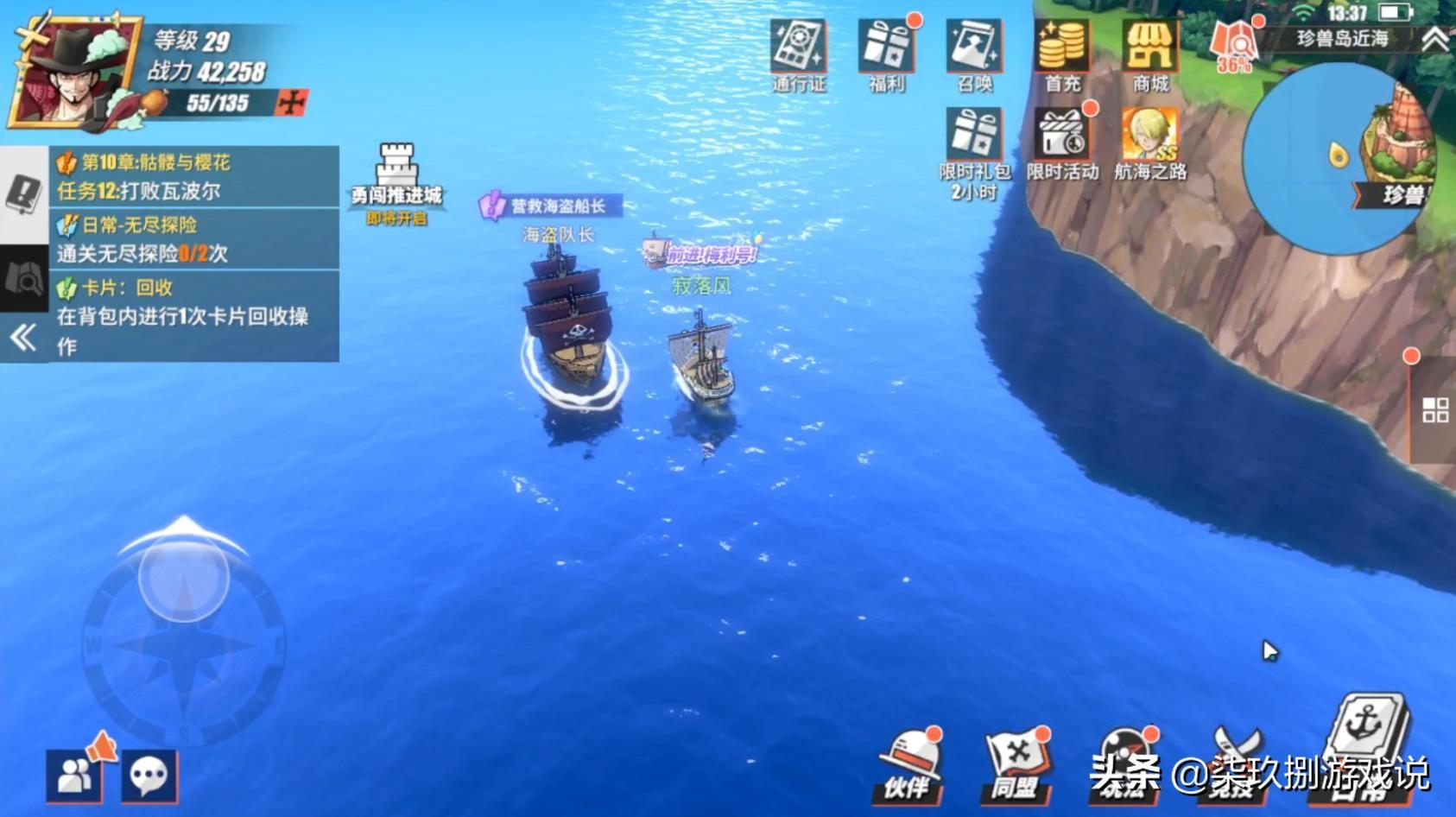 找齐所有船员后,返回“海盗队长”处交付任务并得知将要前往“珍兽岛”地图区域东边海域(对话结束后,获得“详实的冒险笔记X1”奖励)。