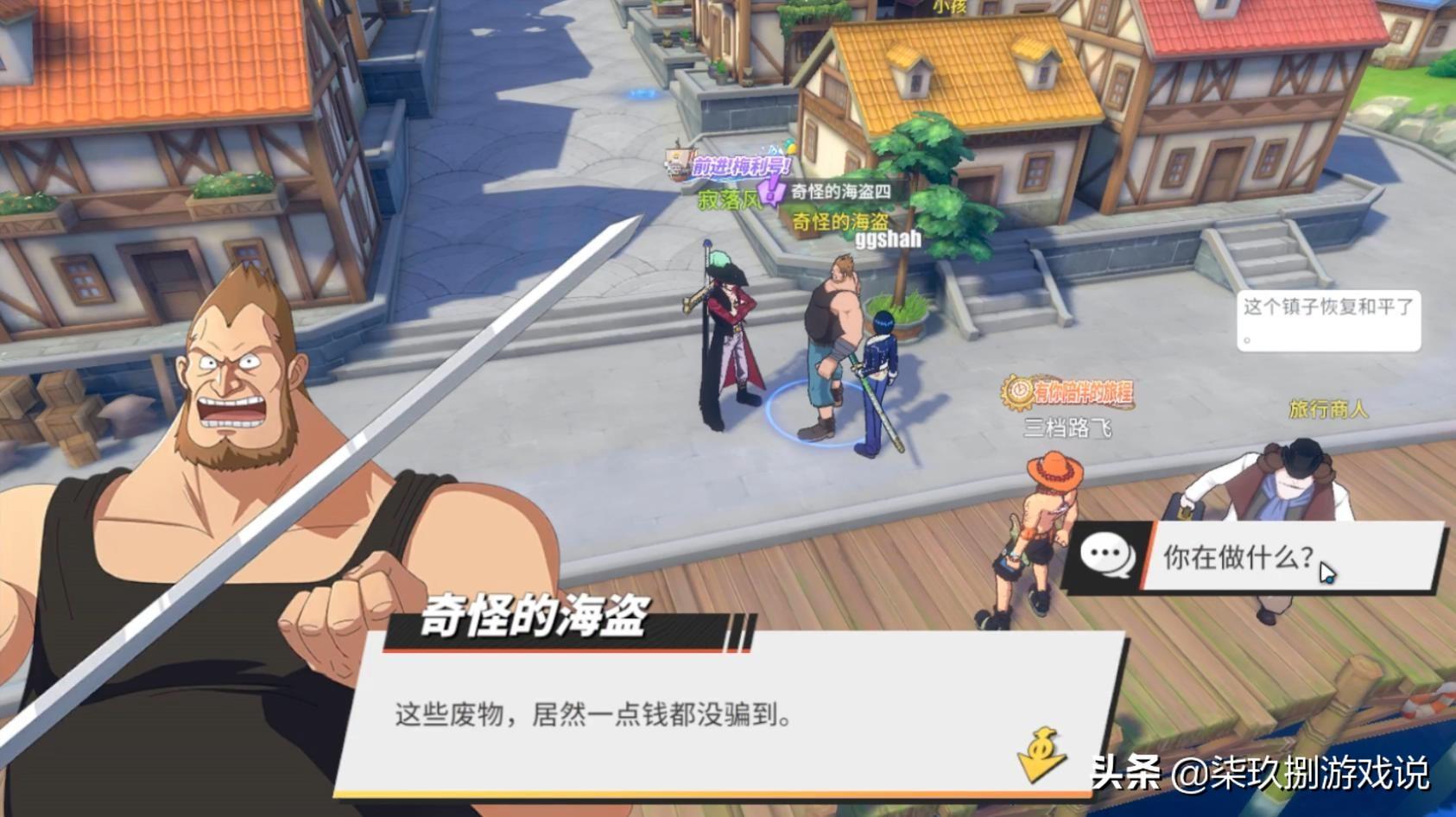 分别击败三个NPC后,就会在橘子镇港口区刷新出最后一个“奇怪的海盗”。玩家与之对话后,依然是一场强制战斗。战斗胜利后,将会获得“探索点数X100;奈美碎片X5;蘑菇X2”的奖励。
