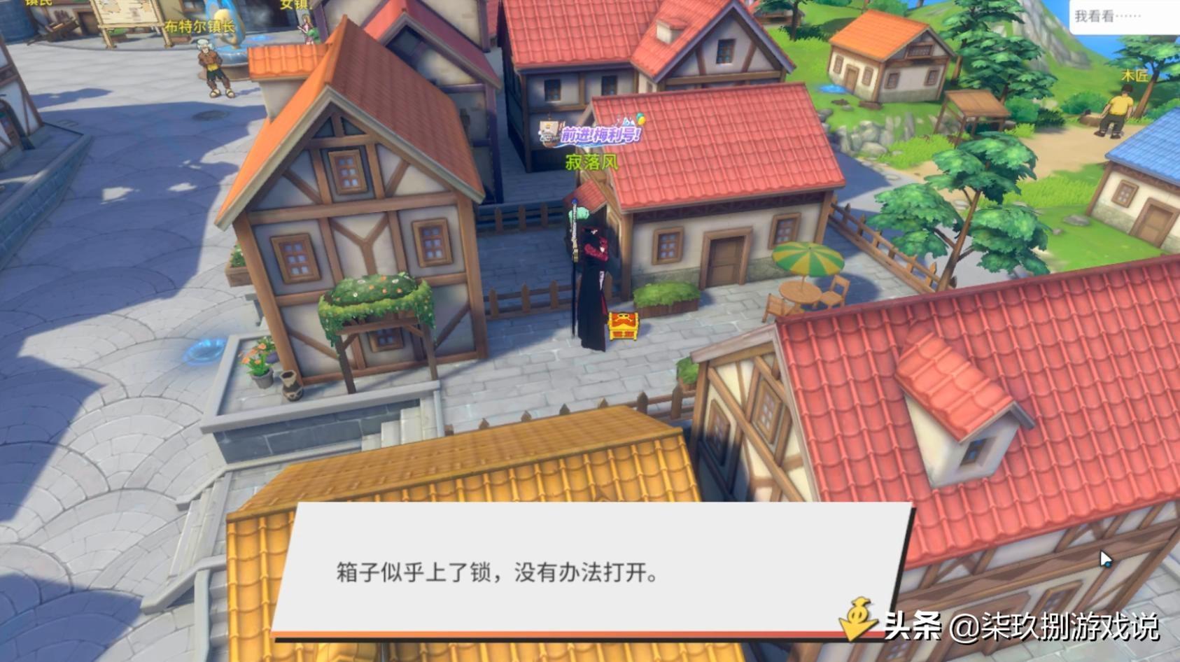 此时,玩家在走出房屋后就会发现,宝箱刷新出的位置,但是却被提示宝箱已经上锁。不得已,只能继续寻找有关密码的线索。