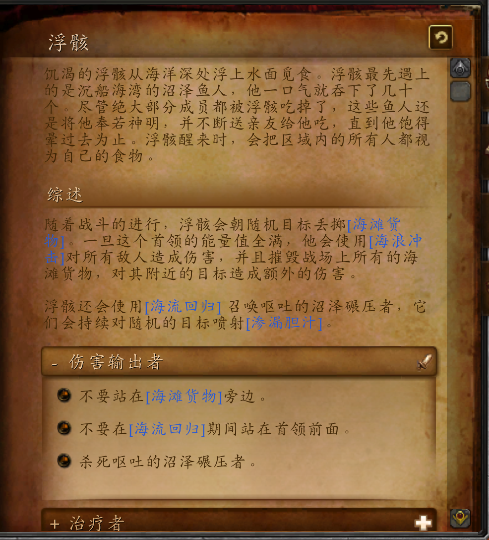 饥渴的浮骸从海洋深处浮上水面觅食。浮骸最先遇上的是沉船海湾的沼泽鱼人,他一口气就吞下了几十个。尽管绝大部分成员都被浮骸吃掉了,这些鱼人还是将他奉若神明,并不断送亲友给他吃,直到他饱得晕过去为止。浮骸醒来时,会把区域内的所有人都视为自己的食物。